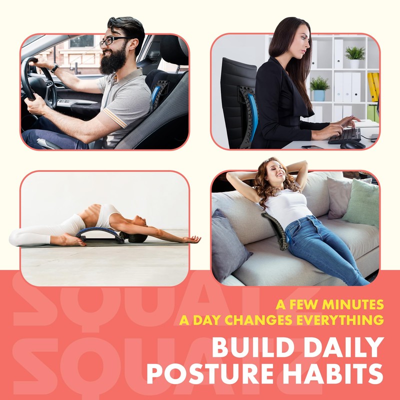 SQUATZ Lower Back Stretcher Device, Ergonomic Lumbar Support Back Massager, Multi-Level Traction, Foam Cushion with Pressure Points, 30-Day Digital Workout Program, for Home, Gym, Car & Yoga Mat Use
