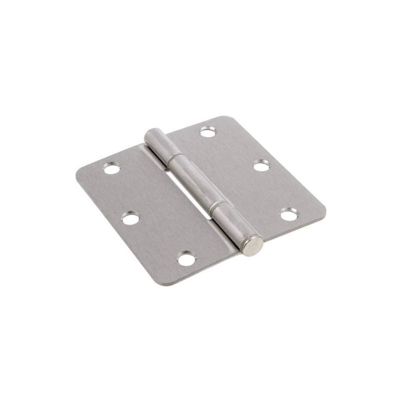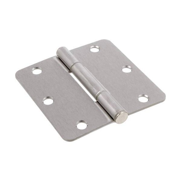 - Squeak-Proof 1/4" Round Corner Satin Nickel Door Hinge (3-1/2") - Sealed Pack of 3 Hinges w Mounting Screws (Hillman No. 854323)