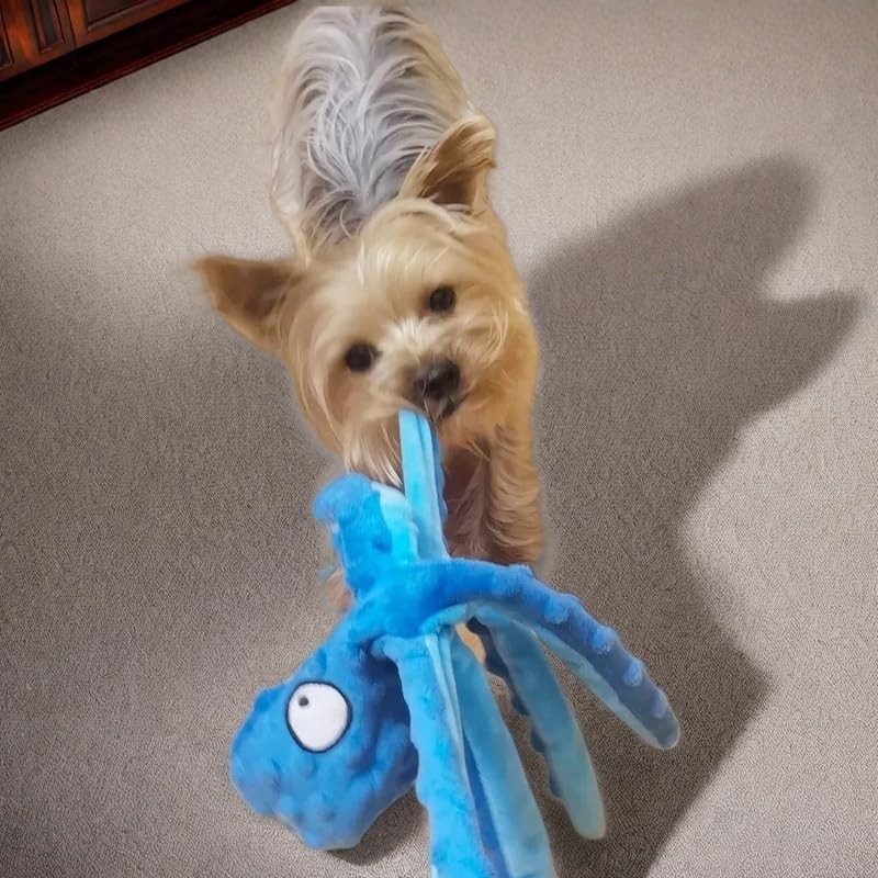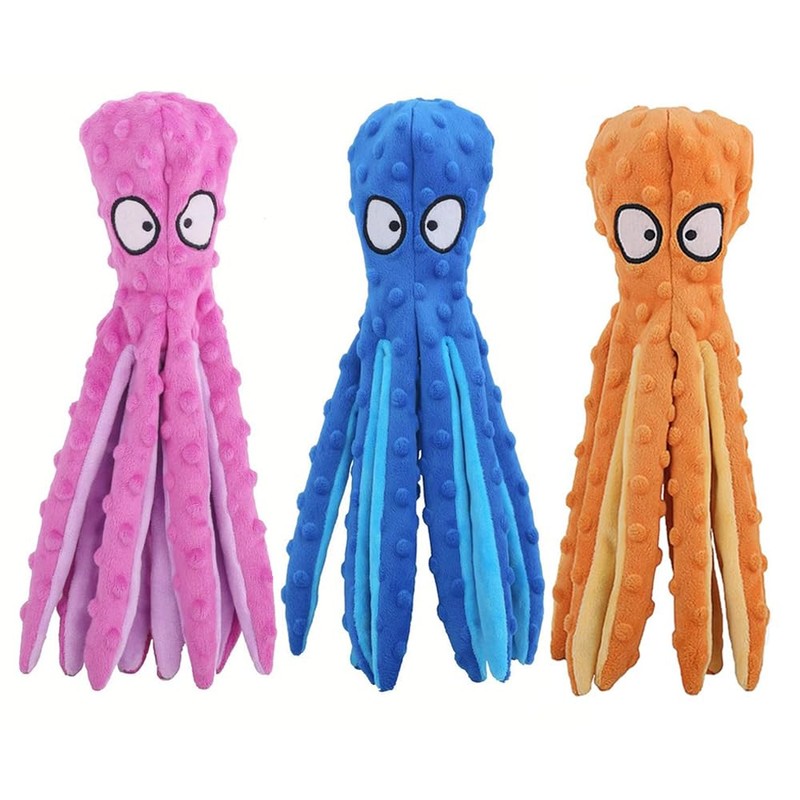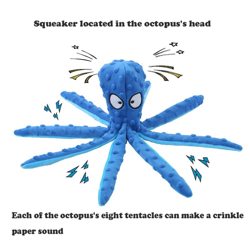 - These toys offer a stimulating play experience with a squeaker located in the Octopus’s head and crinkle paper integrated throughout its body. These different sounds are sure to captivate your dog's attention and keep them entertained for hours.