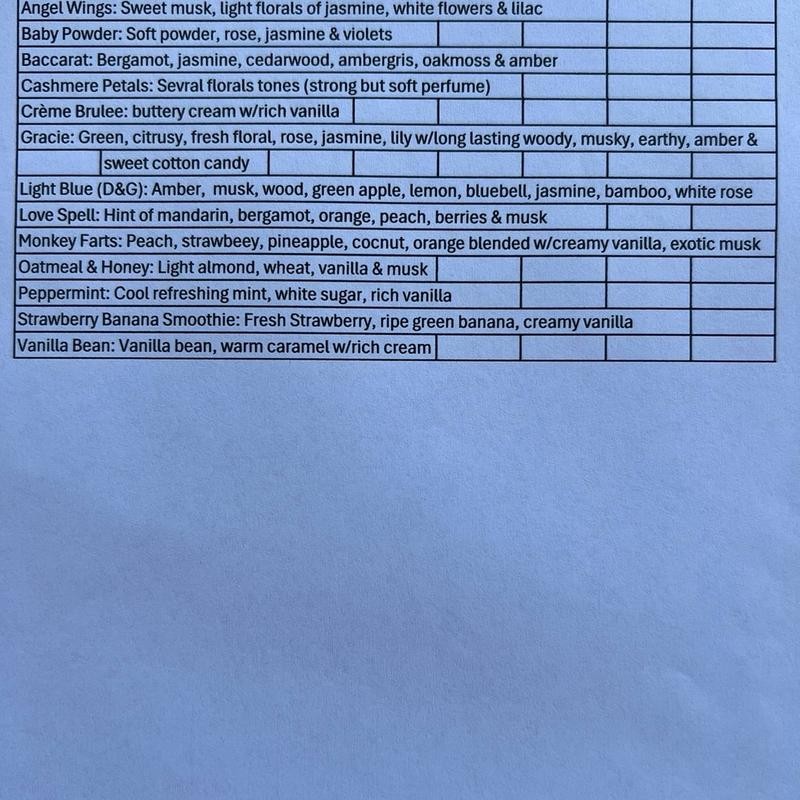 We will be adding new scents daily. Feel free to message us with a scent you would like to see.