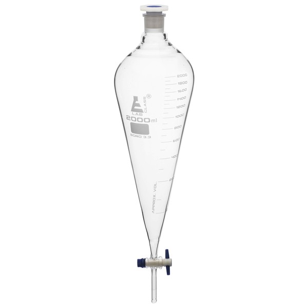 Squibb Separating Funnel, 2000ml - 29/32 Plastic Stopper, PTFE Key Stopcock, Graduated - Borosilicate Glass - Eisco Labs