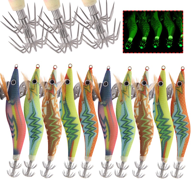 - Squid jig full body luminous effect, ideal for fishing for these creatures after dark or in deep waters. The reflection effect of the device is very good, which can attract squid close
