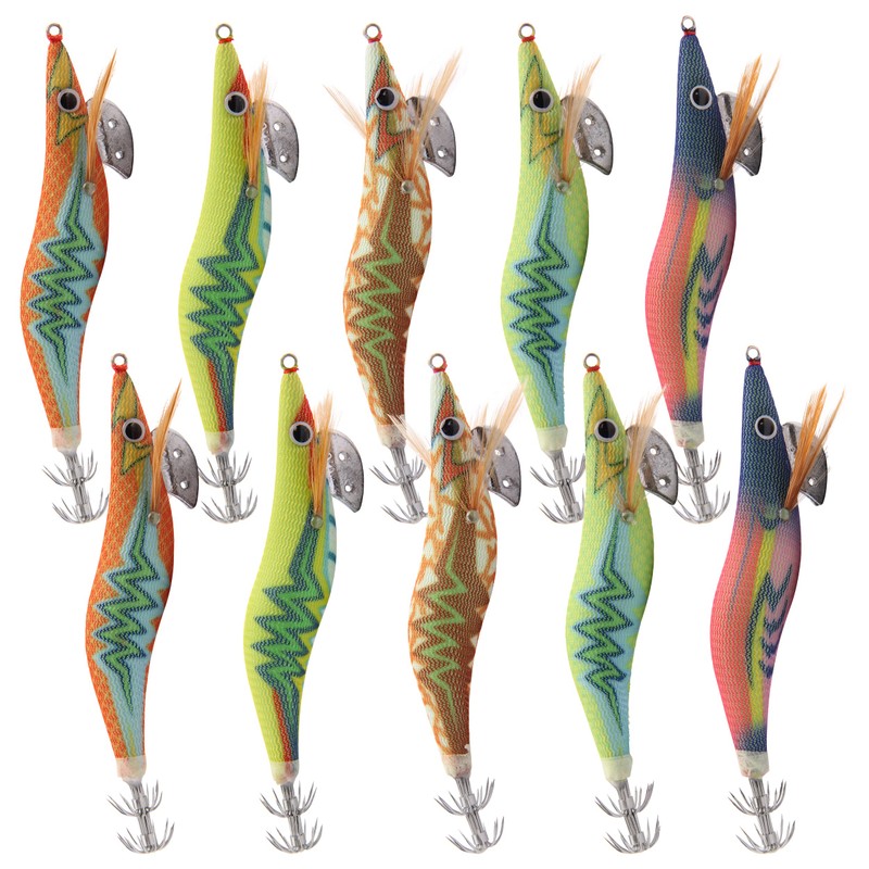 Squid Fishing Lures, Luminous Shrimp Lures, Fishing Lures, Hooks, Fishing Lures with Double Plastic Box(2.5#-10pcs)