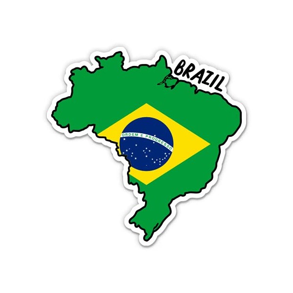 Squiddy Brazil Map with Flag - Vinyl Sticker for Car, Laptop, Notebook - 5"