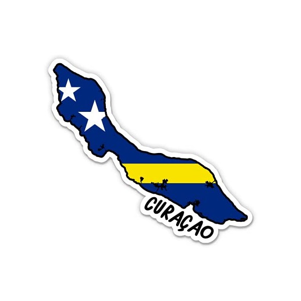 Squiddy Curacao Map with Flag - Vinyl Sticker for Car, Laptop, Notebook - 5"