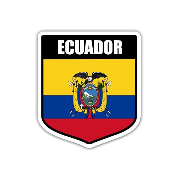 Squiddy Ecuador Flag Shield - Vinyl Sticker for Car, Laptop, Notebook (5" high)