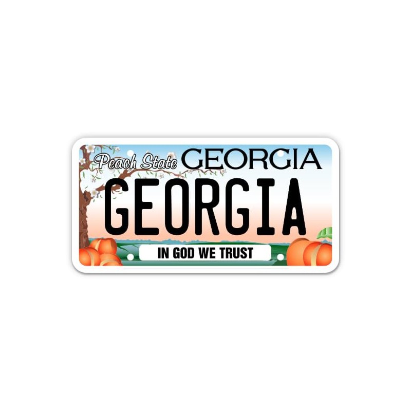 Squiddy Georgia State License Plate Style - Vinyl Sticker for Car, Laptop, Notebook (5" Wide)