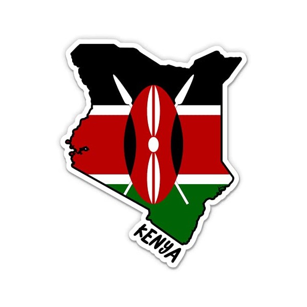 Squiddy Kenya Map with Flag - Vinyl Sticker for Car, Laptop, Notebook - 5"