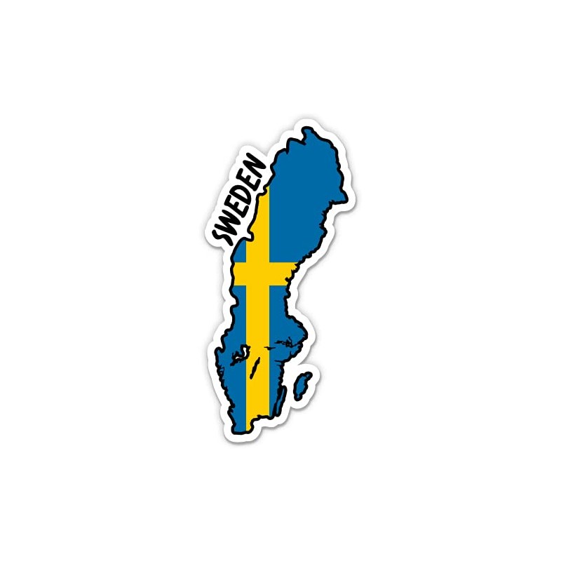 Squiddy Sweden Map with Flag - Vinyl Sticker for Car, Laptop, Notebook - 5"