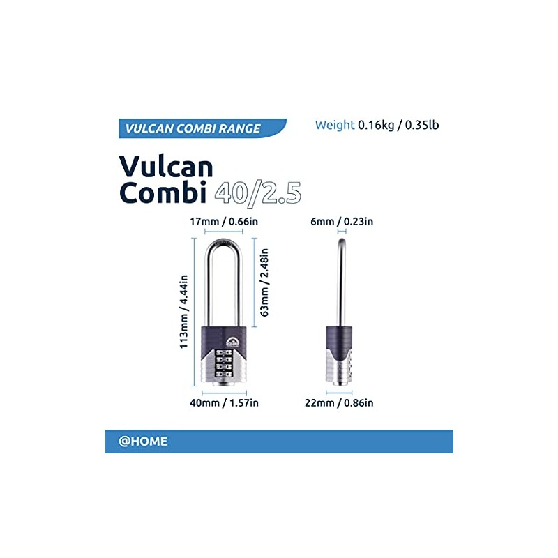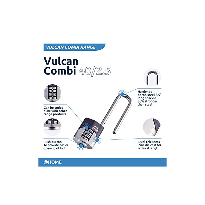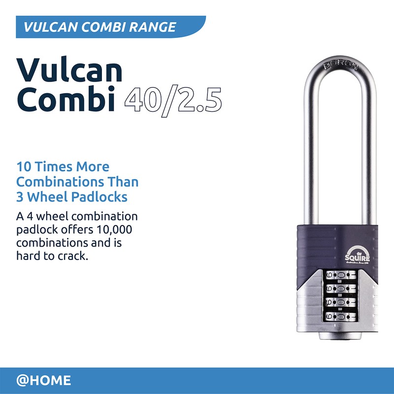 Squire Heavy Duty Padlock (Vulcan Combi 40/2.5) - Toughest Long Shackle - 4 Wheel Vulcan Padlock - Steel Cast Alloy for Corrosion Resistance - Weatherproof Lock for Home & School (Blue, 40 mm)