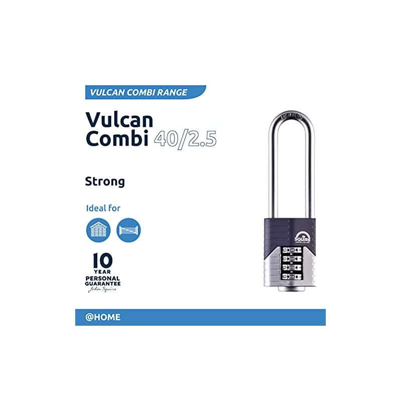Squire Heavy Duty Padlock (Vulcan Combi 40/2.5) - Toughest Long Shackle - 4 W...