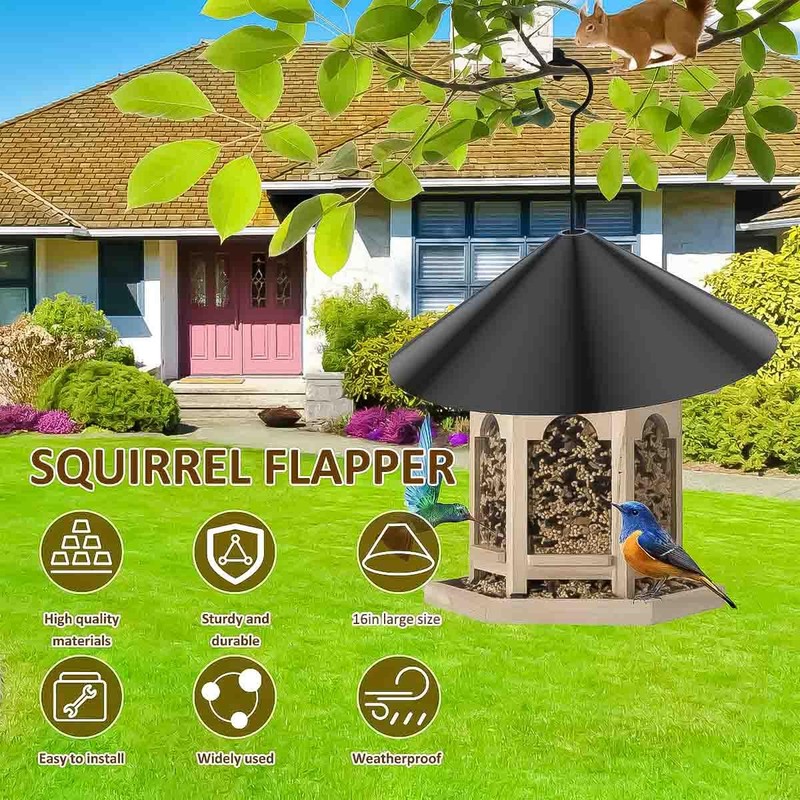 - 【Sturdy and Durable Squirrel Baffle】: The 16 inch large squirrel baffle is made of high quality PP material with glossy black surface, not easy to crack and durable. Very wear-resistant, not afraid of the wind and sun