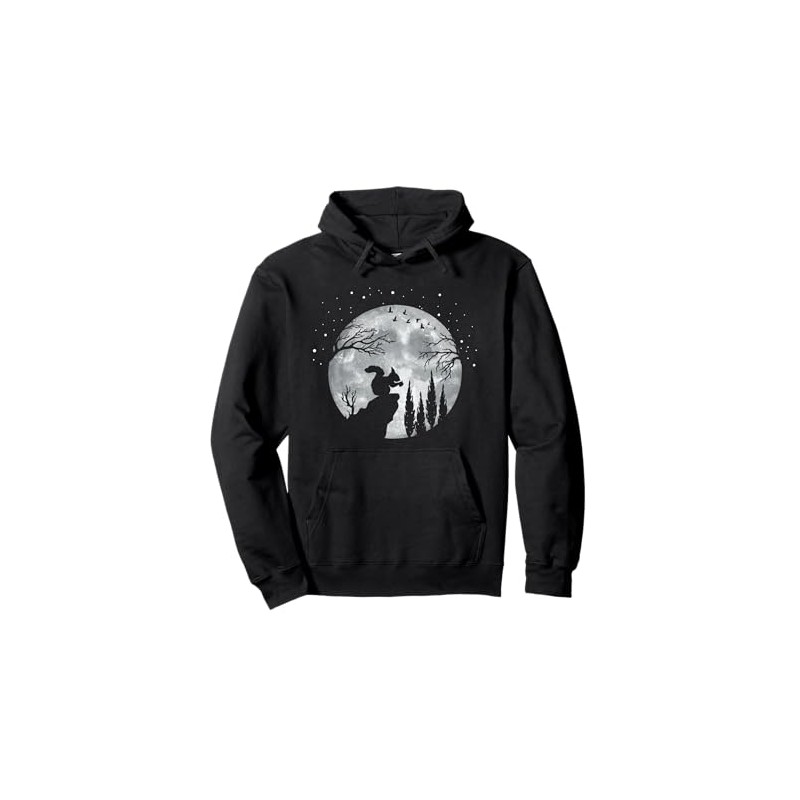 Squirrel Forrest Animal Lover Full Moon At Night - Squirrel Pullover Hoodie
