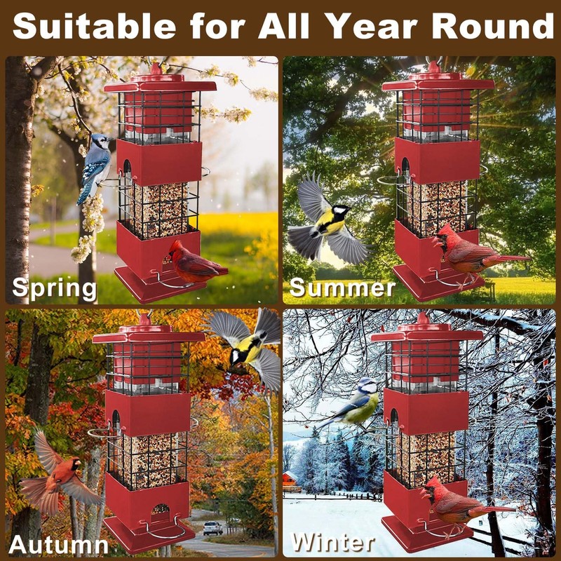 Squirrel Proof Bird Feeder, Metal Bird Feeders for Outdoors Hanging, 2.5lb Gravity Protection Squirrel Proof Wild Birds Seed Feeders for Finch Cardinal Blue Jay Outside (Red)