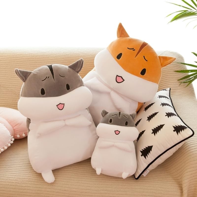 Squish Buddies Hamster Plushie 30cm - Adorable Brown Hamster with Happy Face, Soft Stuffed Animal, Cuddly Plush Toy for Kids and Girls (Grey Happy Face)