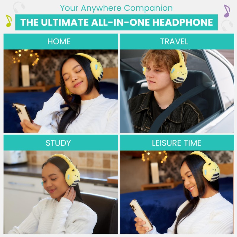 - OFFICIAL LICENSED SQUISHMALLOWS SUNNY THE BEE PRODUCT - Made to a very high quality, these soft plush earphones will be sure to impress. An ideal gift for any Squishmallows fan. Other characters are available.