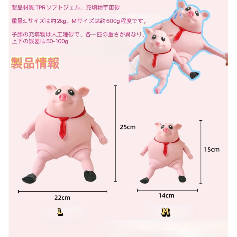 - 3.This squishy pig toy is made of high quality TPR material, safe and reliable, high elasticity and toughness, easy to squeeze, durable and not easy to break