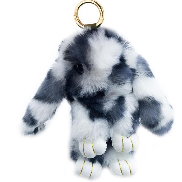 Sqzrpomddy Keychain, Keychain, Cute, Leopard Pattern, Fluffy, Keyring, Hanging Bag, Rabbit Key Holder, Backpacking, gray (light gray)