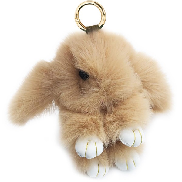 Sqzrpomddy Keychain, Keychain, Cute, Rabbit, Fluffy, Keyring, Bag Hanging Decoration, Rabbit Keychain, Backpacking, Khaki