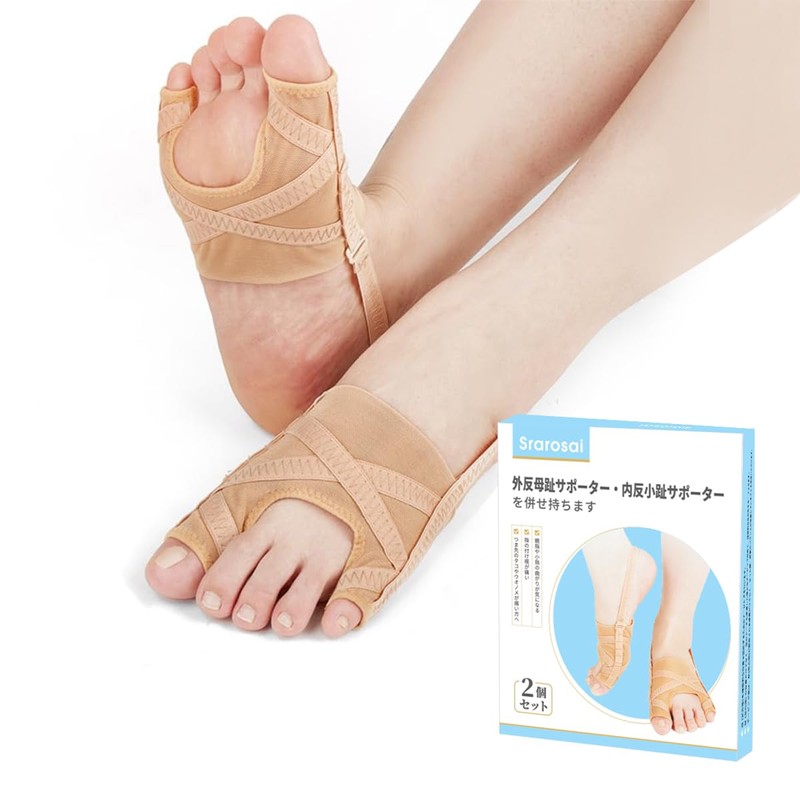Srarosai 足指サポーター 【医師監修】母趾・小趾サポーター 外反母趾対策 薄型 調整可能タイプ 5段階アジャスターフック付き 足指を広げる 通気性よい 2個入り