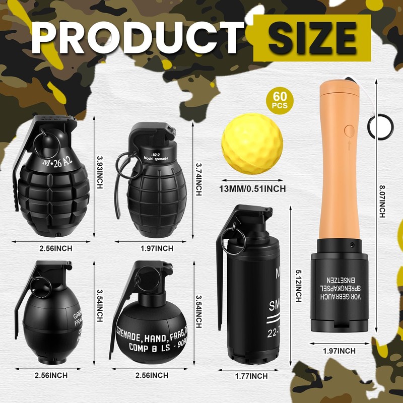 - Sturdy and Stable Materials: each grenade is made of reliable nylon material, strengthening the toy to be robust and resistant to shattering upon impact; This rugged construction is tailored to ensure a safe and durable playtime, letting you play without worry of damaging the toy or getting injured in excitement