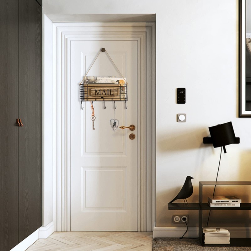 - Hanging Mail Organizer - With hemp rope design, the mail holder will be easy to hang on the wooden wheel hook which included in the package or other wall hooks.