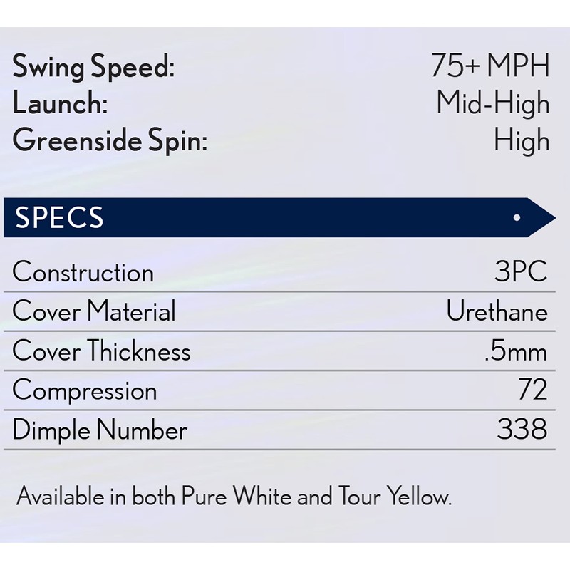 - 338 Speed Dimple Pattern - Providing a penetrating ball flight in all conditions, the optimal dimple design increases lift and reduces drag to maximize distance.