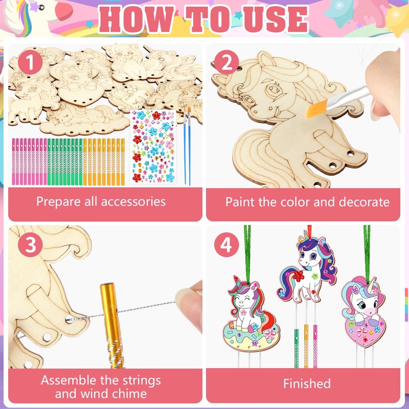 - 【Inspire Kids Imagination】--This unicorn wind chime crafts for kid can stimulate the imagination of girls boys, children can assemble and design a unique wind chime by coloring it as they like