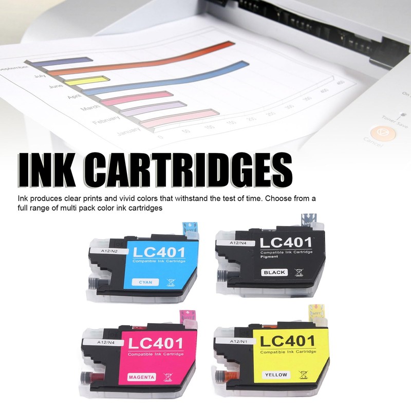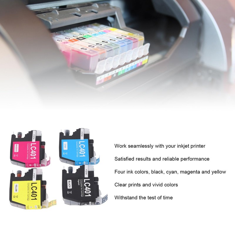 - EXCELLENT INKJET QUALITY: LC401 4-pack standard yield colour ink cartridges are designed to work seamlessly with your inkjet printer and deliver satisfactory results and reliable performance
