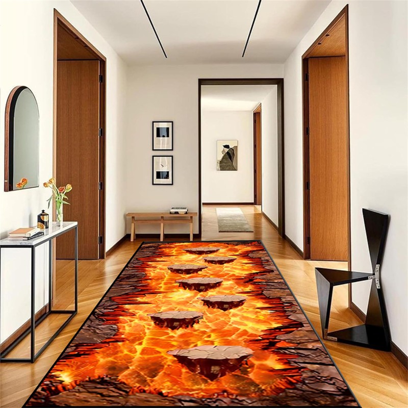 Srocvi Lava Runner Rug 3D Optical Illusion Flame Volcano and Bricks Geometric Print Rugs Hot Lava Pattern Long Kitchen Rug Funny Aesthetics Decor Doormat for Indoor Hallway Corridor Entryway, 2x6ft