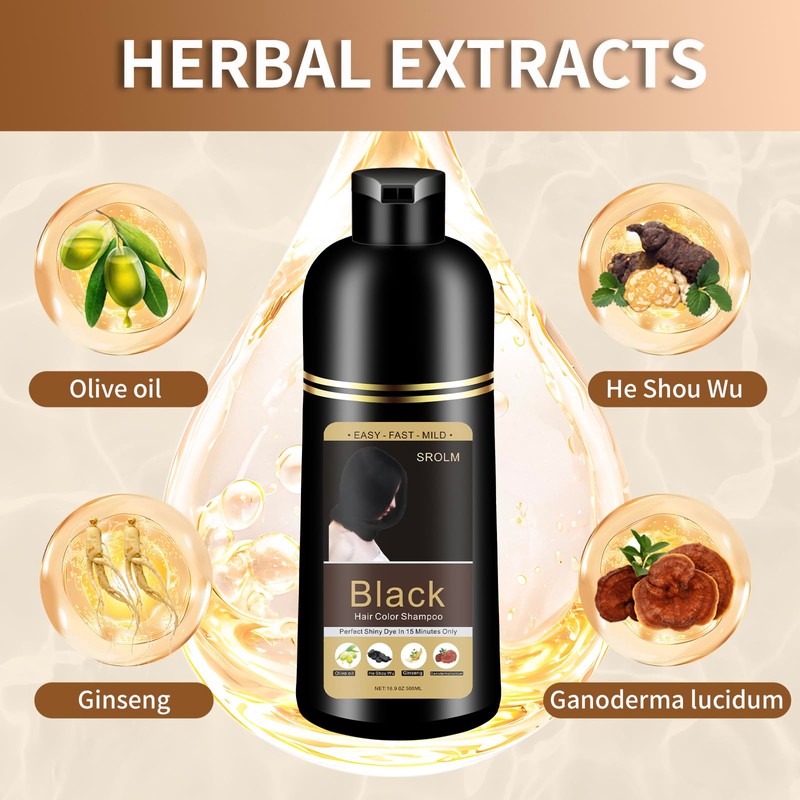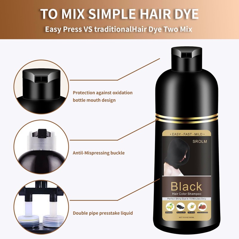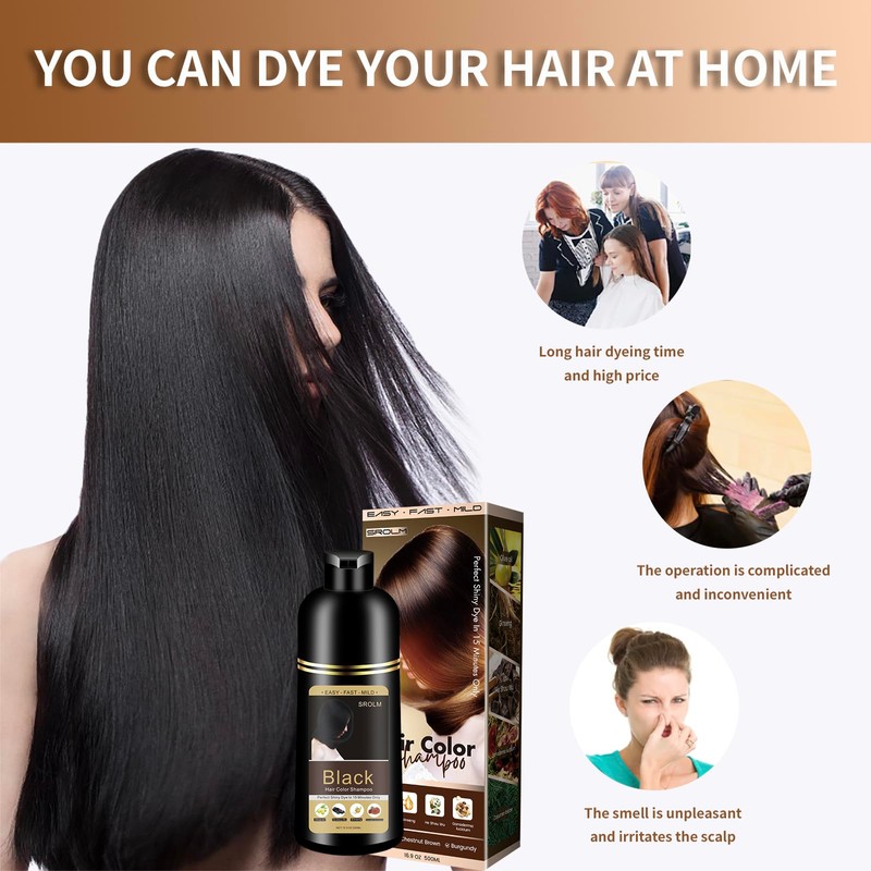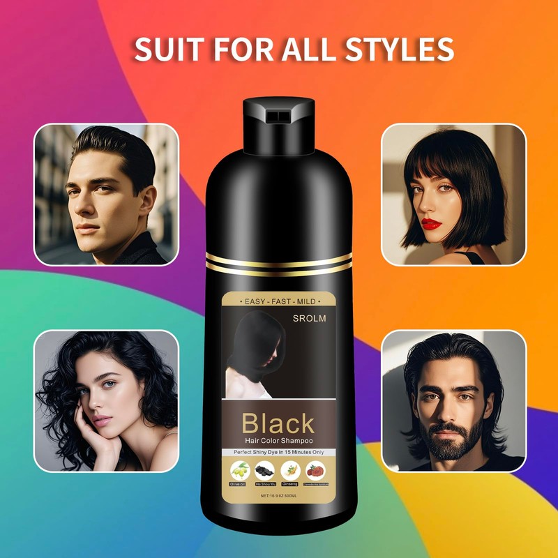 - Gray Coverage & Vibrant Color-SROLM’s all-in-1 Hair Dye Shampoo combines coloring, conditioning, and cleansing in one step! Achieve salon-quality black hair that looks vibrant, healthy, and natural – no harsh chemicals, no scalp irritation.