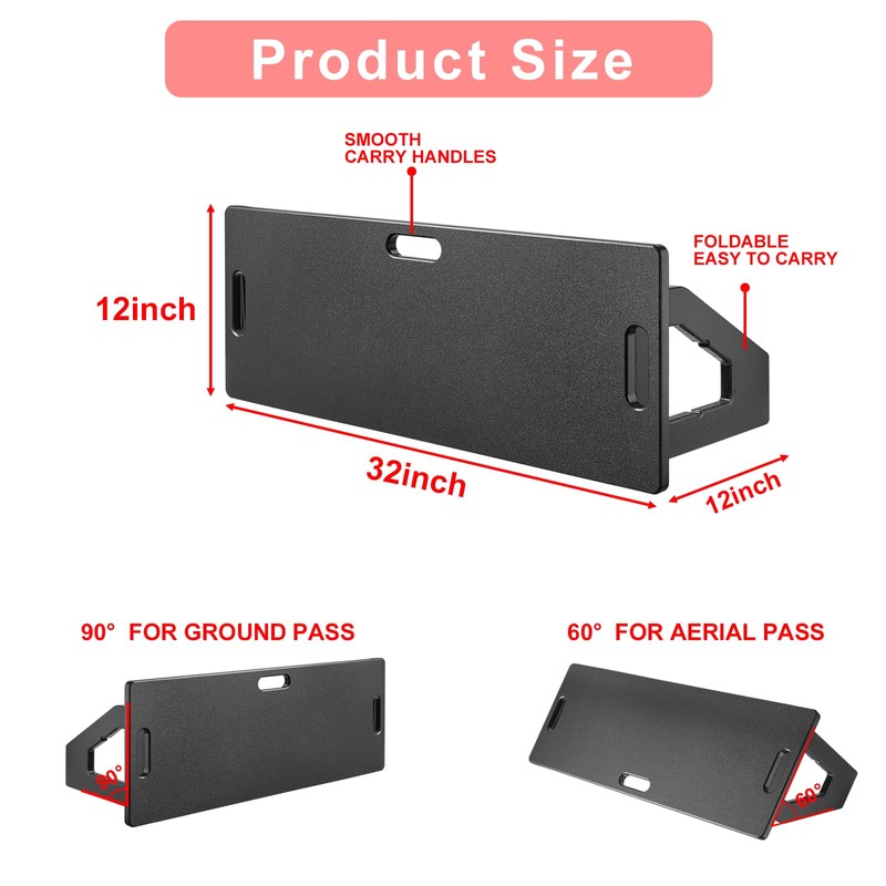 - Portability - The 32x12 inch portable soccer training foldable design takes up very little space, comes with a tote bag, has 3 holes as handles, and can be easily lifted by one person