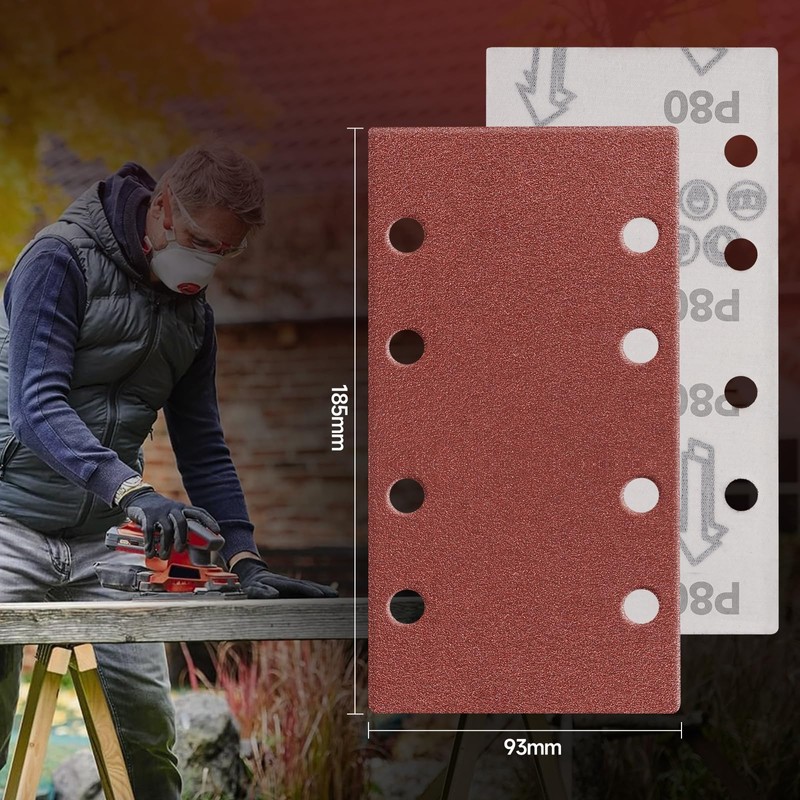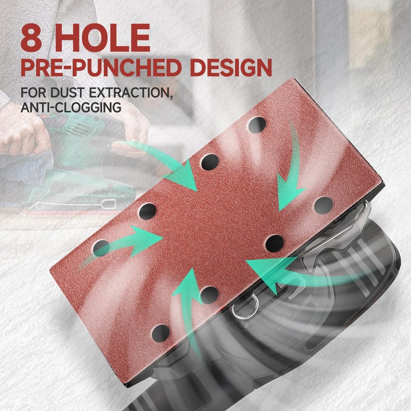 - Velcro strap support and 8-hole design: the Velcro sandpaper 93 x 185 has a Velcro support with strong adsorption, which can be easily and quickly attached to the sander, does not fall off easily and is easy to disassemble. And there are 8 holes on the sanding pad, which can effectively remove dust and prevent the accumulation of ineffective materials.
