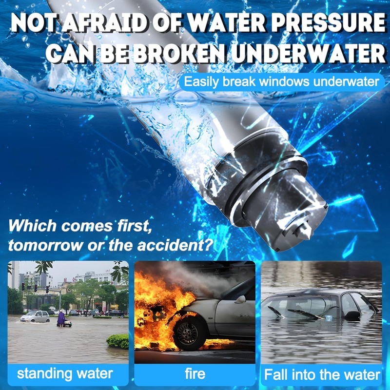 - Can be used in multiple environments: the housing of the emergency hammer is made of high-strength aluminium alloy, which has stronger corrosion resistance, wear resistance and insulation. It is waterproof and can continue to be used normally even after 30 minutes immersion at less than 1 metre depth, adapting to various harsh climates and road conditions. Ensure safety and reliability, whether on long journeys or daily commuting, this car emergency hammer is your indispensable companion.