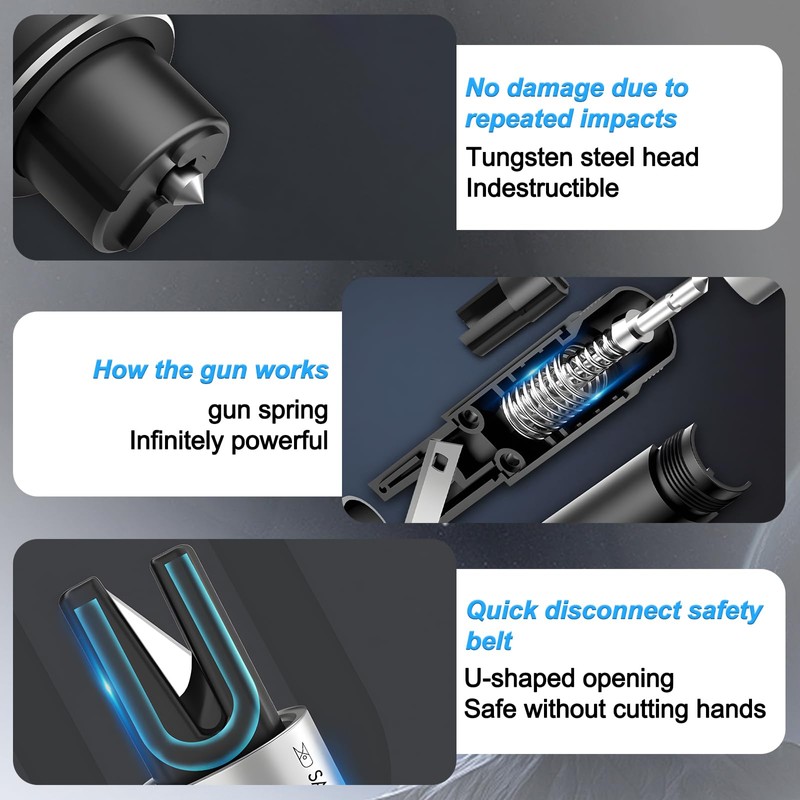 - Multifunctional in one: Our car safety emergency hammer not only has the function of hitting the window to escape, but also offers the practical function of cutting the seat belt. In an emergency, this emergency hammer can quickly help people in the car to hit the windows to escape, while quickly cutting the seat belts to save trapped passengers. Protect your driving safety in all aspects.