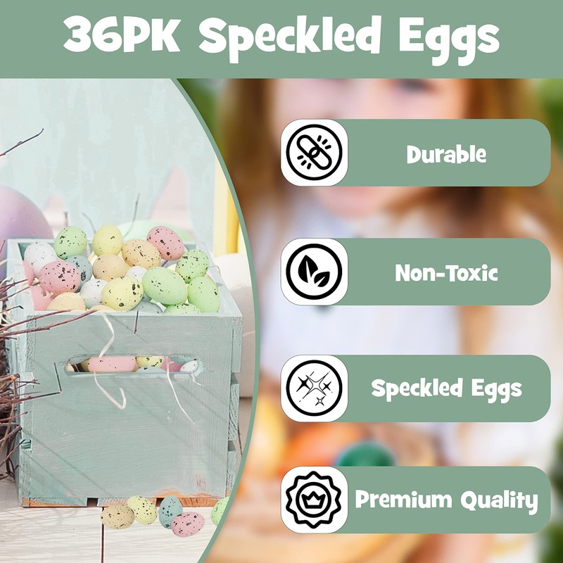 SRV Hub 36Pcs Easter Mini Eggs, Easter Decorations, Artificial Bird Eggs, Decorative Easter Eggs, Speckled Eggs for Kid Art Crafts Supplies