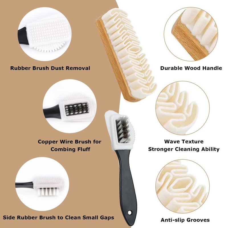 2. The shoe cleaning brush is just right firm to effectively remove dirt and dust without damaging the sensitive suede.