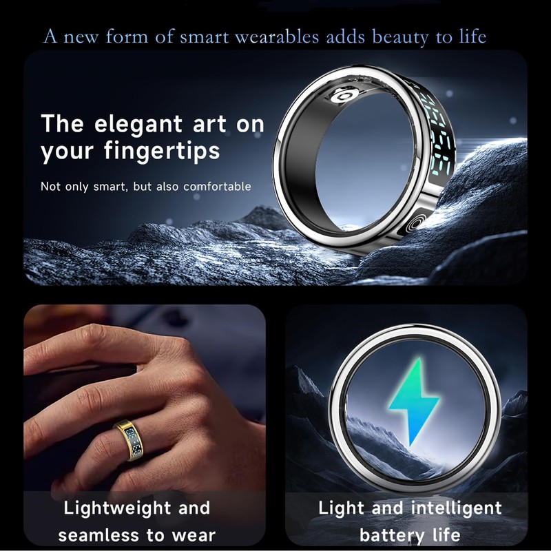 SRZOBYU Unisex Smart Ring with LED Display, Touch Control, Charging Case – Track Activity, Sleep, Heart Rate & Blood Oxygen, IP68 Waterproof, Ideal Gift, Compatible with iOS & Android(Black-Size11)