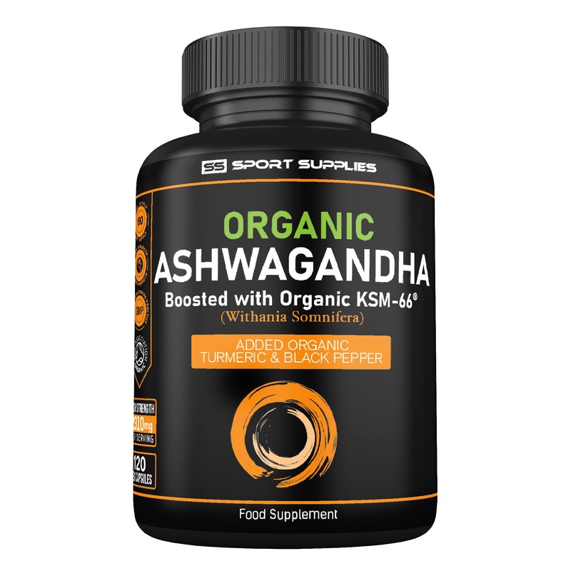 SS Sport Supplies Organic Ashwagandha Capsules 1200mg Boosted with 100mg of Organic KSM-66 with 5% Withanolides with Added Organic Turmeric 200mg and Organic Black Pepper - Providing 1500mg Per Serving