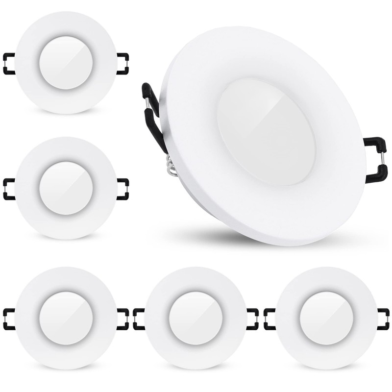 - Pack of 6 simple recessed lighting made of matt white and rust-proof aluminium with glass panel and sealing rings for bathroom and outdoor use