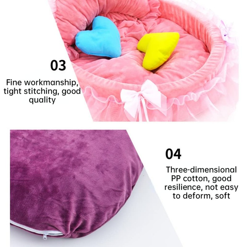 SSDHUA Cute Cat Bed Heart-Shaped Cat Nest Lace Lace Princess Nest Cotton Velvet Warm Soft Cat Sofa Bed Suitable for Cats and Dogs to Spend The Warm Winter (L,Grey)