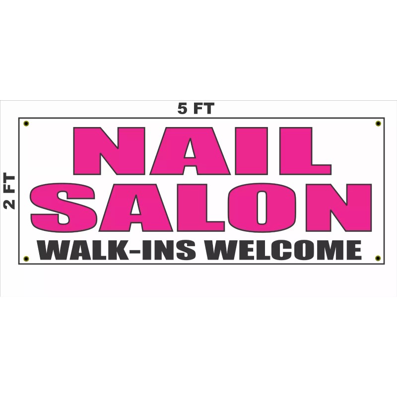 SSI NAIL SALON WALK-INS WELCOME Banner Sign 2x5 Bright Magenta Pink