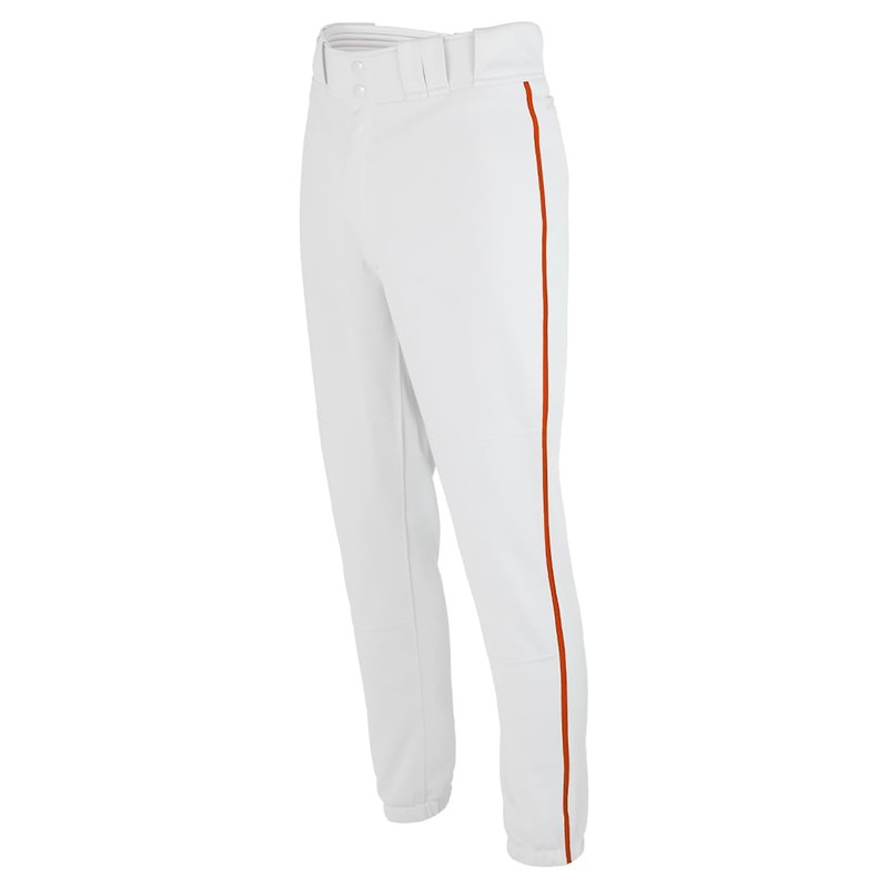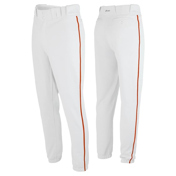 SSK Showcase Collection Flex Bottom Adult Baseball Pants | Adult Sizes Solid & Piped (US, Alpha, X-Large, Regular, Regular, White/Orange)