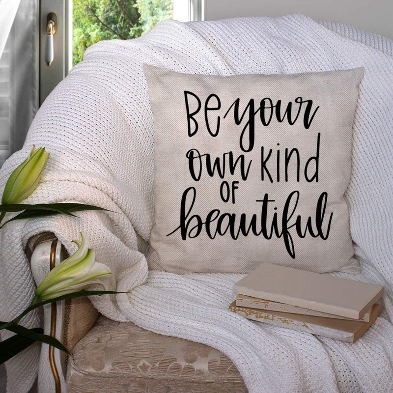 SSOIU Motivational and Inspirational Quote Throw Pillow Cover, Be Your Own Kind of Beautiful Cotton Linen Throw Pillow Case Cushion Cover Home Office Decorative Square 18 X 18 Inches