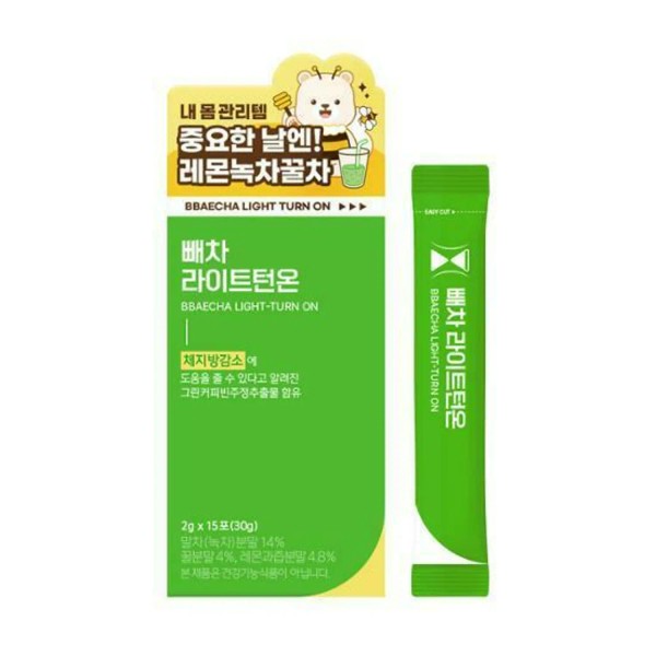 Inner beauty powder tea for light morning. BBAECHA light-turn on for easy and light consumption. Sweet and refreshing flavor enjoyed by idols. Contains a functional ingredient that is known to be helpful in reducing body fat. Recommended for those who drink coffee or soda instead of water, do not want to drink water, need to hydrate body during exercising, like oily food, need to improve body condition, have irregular diet habit, and want to drink something after a meal. Provides tasty lemon green tea flavor without bitterness. Powder stick tea for easy consumption and high nutrition made with matcha, lemon, and honey. The powder type green tea allows consumption of beneficial ingredients. The tiny 2g stick powder can be easily carried. The package can be easily cut with hands without scissors. Simply mix the powder in water for tasty hydration.