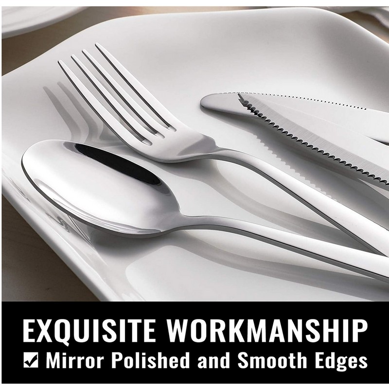 - DISHWASHER SAFE: Completely dishwasher safe saves you a lot of trouble. Durable, rust resistant, smooth surfaces, this stainless steel silverware set is extremely easy to clean and care. Care instructions: For best results, do not leave the kitchen utensils set soaking for a long period time. After use, please clean and dry them completely for their durability. Dry promptly after cleaning.