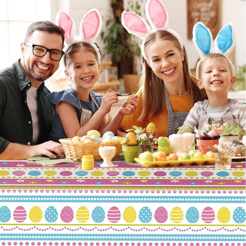 SSuirk 2-Pack Easter Eggs Tablecloths - 54x108 Inch Disposable Plastic Table Covers for Easter Dinner and Spring Holiday Party Decorations