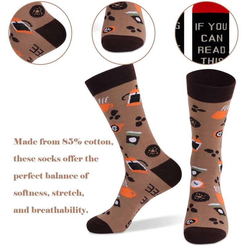 - 【Makes an Hilarious Surprise Gift for Coffee Lovers】: Whether you're gifting them to a coffee aficionado or a morning person, these novelty socks make a delightful surprise. They come in a fun, clever package that adds an element of surprise to any gift-giving occasion.