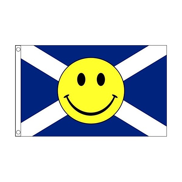 • Scottish Heritage with a Cheerful Twist: Embrace Scottish pride with the traditional St Andrews flag embellished by a cheerful yellow smiley face, fusing national pride with a touch of joy.