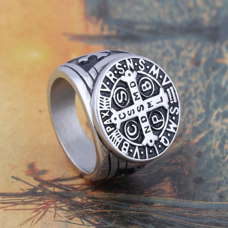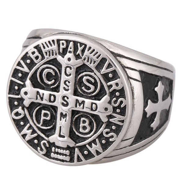 St Benedict Exorcism Stainless Steel Ring Demon Protection Ghost Hunter,10